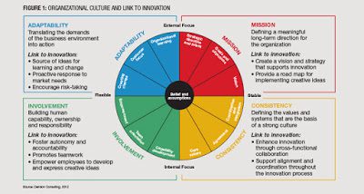 The Denison Organizational Culture Model includes four essential traits — mission, consistency, involvement and adaptability — of high-performance organizational culture. Studies by Denison Consulting — an organizational culture and leadership development consulting firm — have shown that these traits are important for organizational performance. Company consultants hypothesized that each trait would be important for innovation.