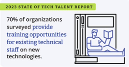 The value of upskilling is also underscored by the fact that 70 percent of organizations already provide training opportunities for new technologies to current staff, according to the report. Forty-one percent respondents highlighted the need for additional training as the technical organization scales.