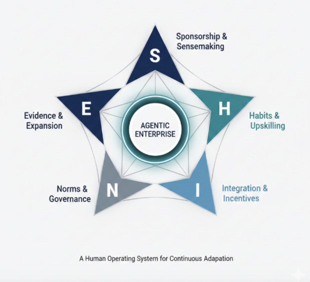 Agentic work environments introduce a structural shift. AI is no longer a tool. It becomes a collaborator. This requires new forms of clarity, new forms of governance, new habits of work and new models of leadership.